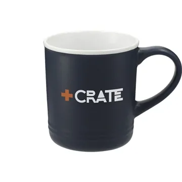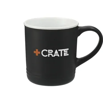 - The Bronx 12oz Ceramic Mug has a matte outer wall with a contrasting white gloss inner wall.