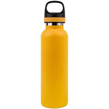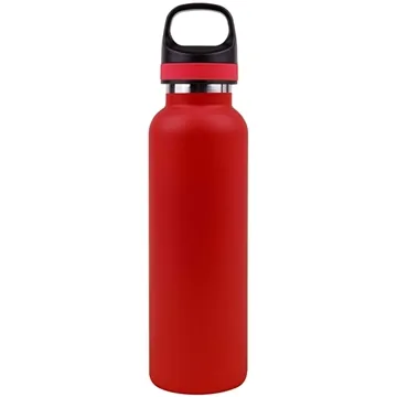 This vacuum-insulated water bottle will keep liquids cold or hot longer on the go than non-insulated bottles. The convenient twist-off cap has a rubber grip and carrying handle.