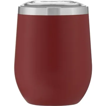- 12 oz double wall 18/8 stainless steel thermal tumbler with copper vacuum insulation, stainless steel accent, clear push-on lid, and powder coated finish – gift box included.