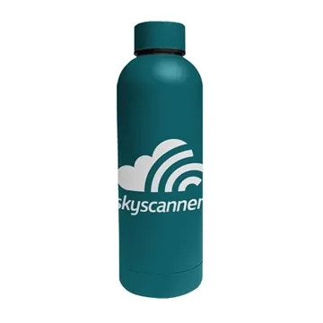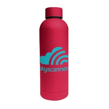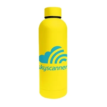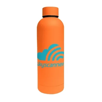 About this 17 oz Double Wall Stainless Steel Bottle with a Rubberized Finish: