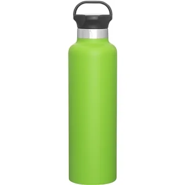 - 24 oz powder coated double wall 18/8 stainless steel thermal bottle with copper vacuum insulation, threaded gear-shaped insulated lid, carrying handle, and high polish accent Ā· patent #D792, 215.