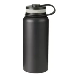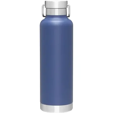 - 24 oz double wall 18/8 stainless steel thermal bottle with copper vacuum insulation, threaded stainless steel insulated lid, carrying handle, stainless steel rim and base, and powder coated finish – gift box included.