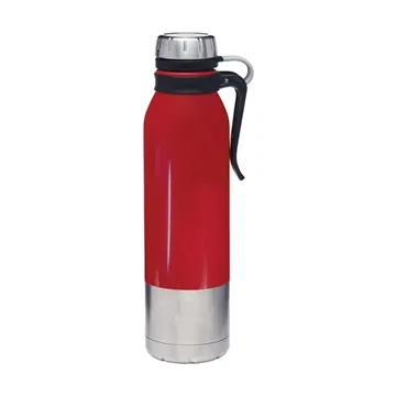 - This stylish 25 ounce, double-wall, stainless-steel vacuum bottle features a twist-on cap with rubber tether and a large clip handle.