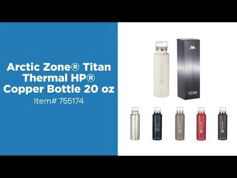 - The Arctic Zone Titan Thermal HP Copper Bottle 20oz features a wide mouth for easy opening, filling, and cleaning. Its double-wall copper vacuum construction is designed to keep your favorite beverage hot for 12 hours or cold for 48 hours. Customize this spill-proof thermal bottle with Laser Engraving to add a distinctive personal touch.