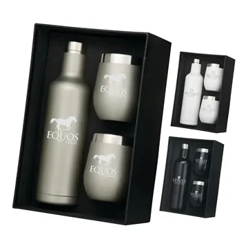 Show appreciation or give an incentive to people who matter most to your brand with a custom wine tumbler gift set they will use continuously! Itās a great gift or giveaway for nearly any seasons and can be personalized to reflect holidays or business themes. This wine tumbler set comes with two wine tumblers and a bottle to hold beverages for people on the go or who want to enjoy a drink while on vacation or traveling. The Bliss Wine Set is a perfect gift set to give out where people will feel and know you appreciate them because of the high perceived value of the item.