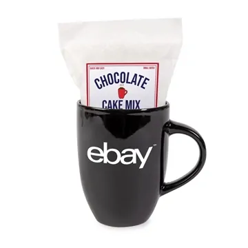 - 10 oz sleek ceramic mug with one color imprint comes complete with our delicious Fresh Beginnings® chocolate mug cake mix.
