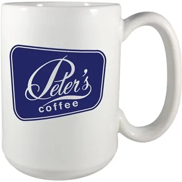- Made in the USA! Sometimes there is no better sight than a hot drink. So why not put your brand in their hands with every sip? This mug is made of ceramic, holds 15 oz. of your favorite beverage and can be screen printed with a one color logo or company name on side of the mug. Great for restaurants, diners, hotels, corporate events and many other promotional venues.
