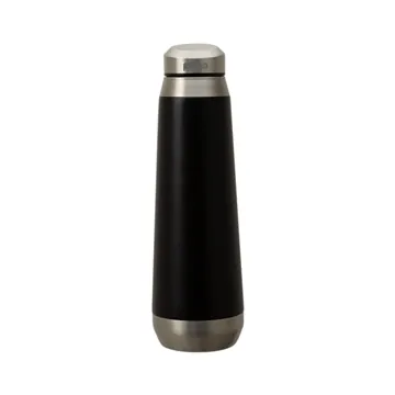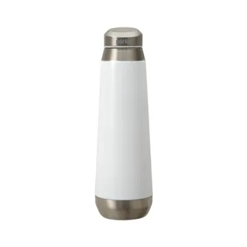 The Perka® Trevi 17 oz. double wall, 18/8 stainless steel water bottle is a truly uniquely-designed drinkware item with its sleek body shape and angled screw-top lid. This bottle also touts high performance with its vacuum sealed construction and copper lining that will keep your water cold for 24 hours and your coffee hot for 24 hours. It fits most car cup holders, can be carried in your gym bag or purse and is FDA compliant and BPA free. Finish / Material: 18/8 Stainless Steel.