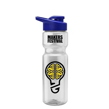 - 28 oz Transparent Bottles with Drink-Thru Lid.