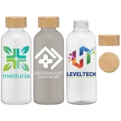- Our Strom 22 oz water bottle is made with recycled PET plastic for a more Earth-conscious way to stay hydrated. It features a renewable bamboo lid that adds a more premium look and feel.