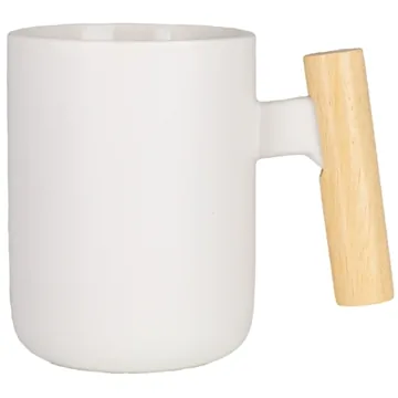 About this Tokyo 12 oz Ceramic Mug W / Wooden Handle: