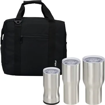 - Includes the 12 oz 3-in-1 Insulator, 20 oz Vacuum Tumbler, 30 oz Vacuum Tumbler and the Cube 24 Can Cooler Bag.