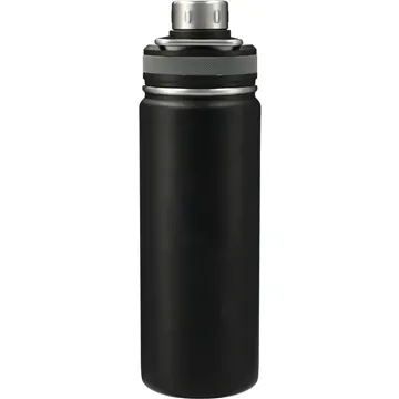 - In addition to a secure screw-on cap, built-in metal loop, and durable powder coating, this double-wall, condensation-resistant bottle also features a wide opening designed for comfortable filling, pouring, and sipping.